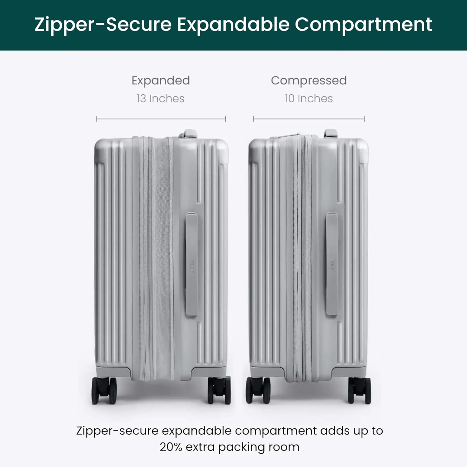 Easily expand your luggage for spontaneous shopping or longer trips. Enjoy more space without the hassle of carrying extra bags. It’s like having an extra suitcase hidden inside!