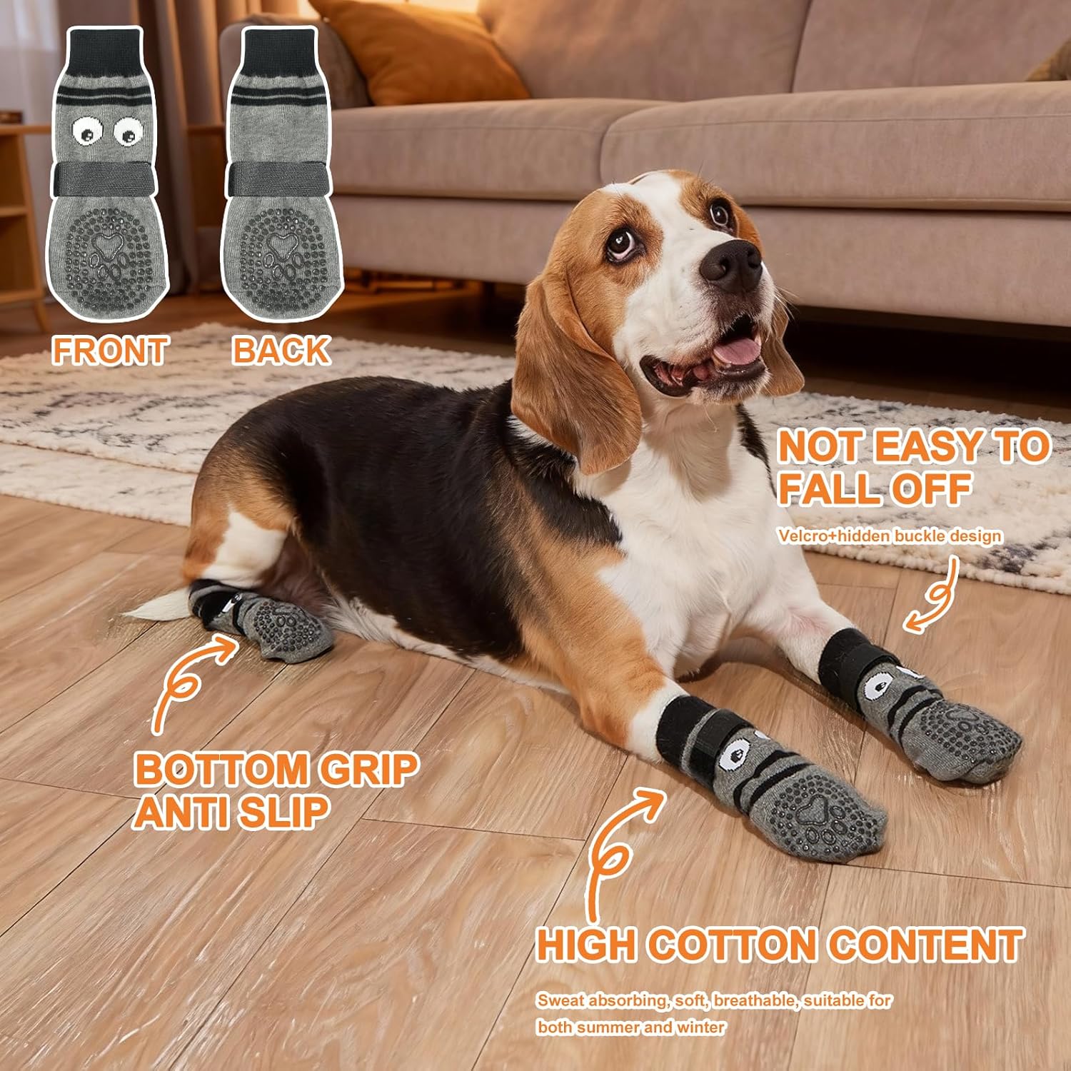 Our socks feature specially designed rubberized soles that enhance traction, helping your dog navigate slippery floors confidently and safely.